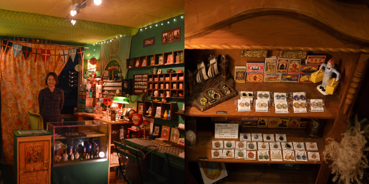 sensibilities. After returning home, she opened “ihania leikkimokki” in Sendai, a shop selling European-sourced goods and her handmade original jewelry. The name means “a small children’s room filled with lovely things” in Finnish.