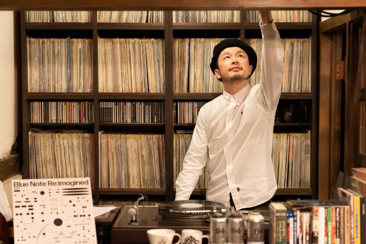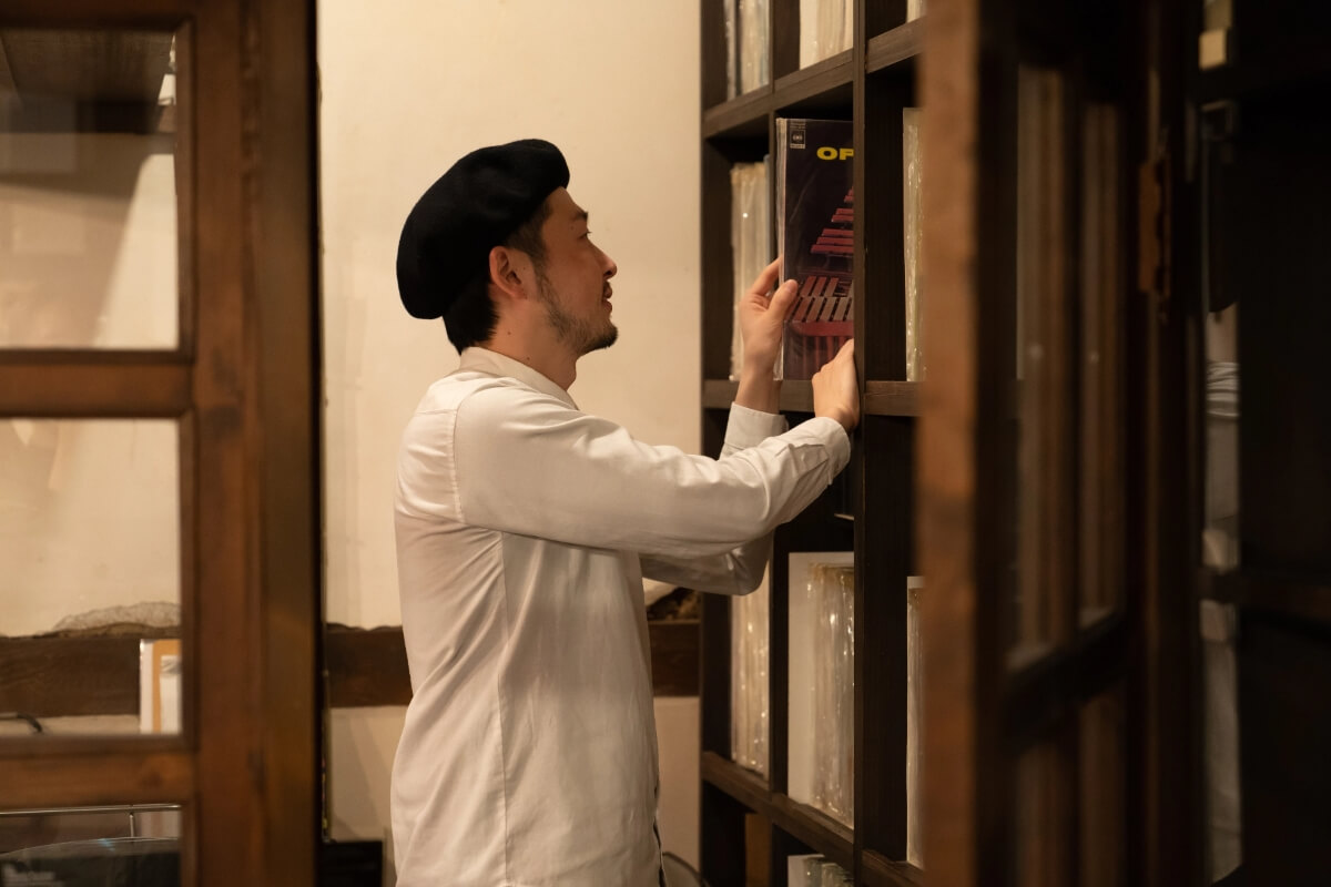 Tatsuhiro plays music through large speakers, selecting comfortable tunes to match the mood of the day—from the late master’s jazz collection to newly released jazz and even jazzy hip-hop.